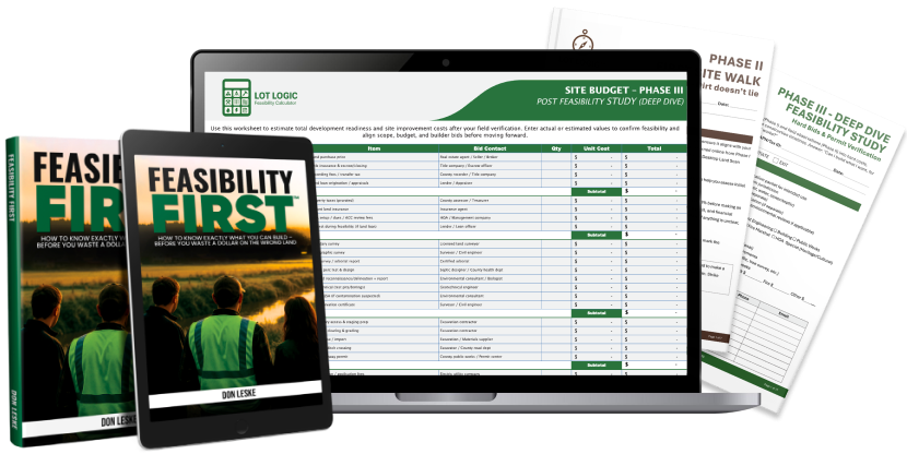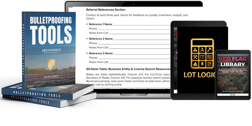 Land Genius AI is available inside every LOT LOGIC™ course and the Feasibility First™ Action Kit.
